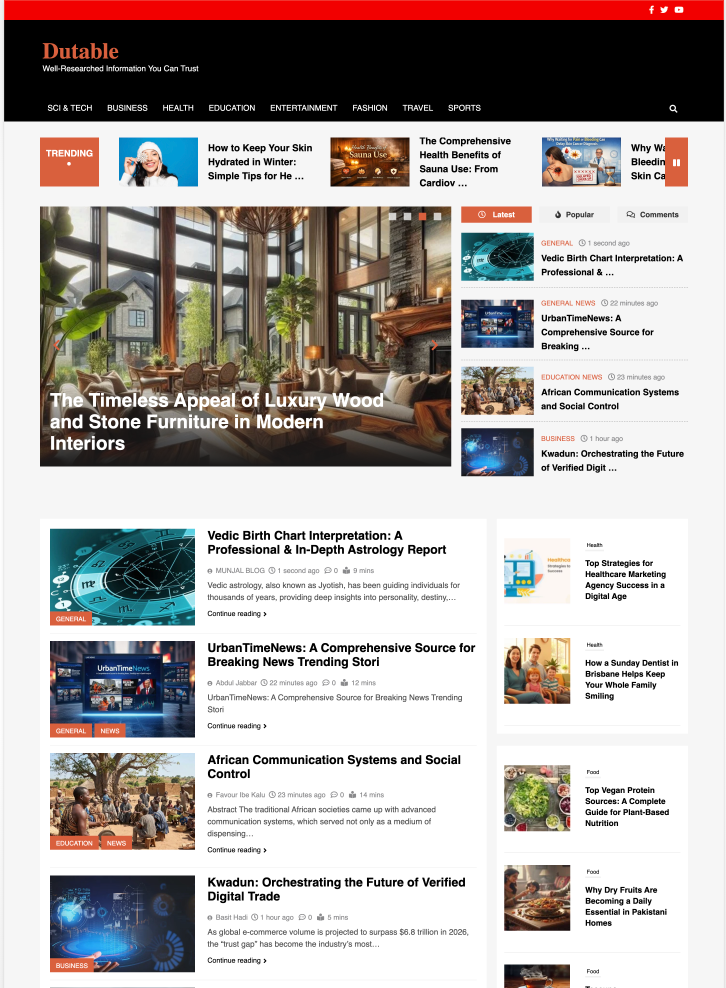Dutable is an educational and informational website covering academics, business, technology, and general knowledge topics. It provides versatile backlink placement opportunities.